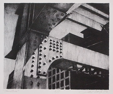 This new woodcut print explores order, chaos, and entropy. This value-based print take visual cues from the natural and manufactured resources: salvaged trees, rebar, concrete, discarded clothes, deconstructed architecture and disused vehicle parts interwoven, tangled and refigured visually in space. The imagery is informed by site visits, forensic photography, first-hand accounts and evidence of changed/damaged/evolving environments.