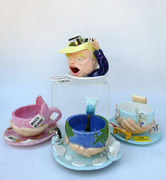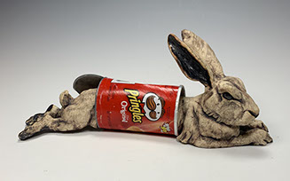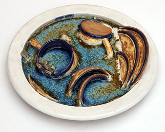I started photographing discarded items in the desert, leaving small ceramic sculptures as a type of cairn to mark spots where I had visited or picked up trash. This led to further investigation of artifact versus trash and how archaeologist use trash piles to date historically significant sites. In an act of cleaning the landscape, I inadvertently erased a future archaeological marker. The act of leaving a cairn and collecting trash became symbols, or a tick on a timeline, that had now become erased. My current work investigates the ”human mark” on the landscape and the contrast of urban environments and uninhabited areas of the Mojave desert. This series of ceramic slip cast ashtrays are a nod to souvenirs from roadside attractions of a past era and commentary on current environmental concerns.