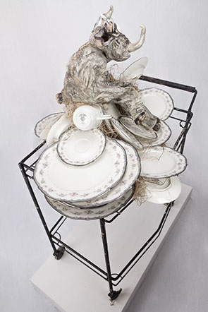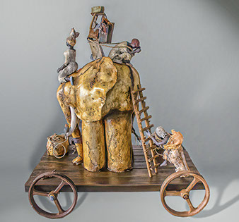 With this work I want to transmit the harmony between man and elephant. I have incorporated earthenware, porcelain, slips and oxides to recreate a daily image of mutual help between humans and animals.