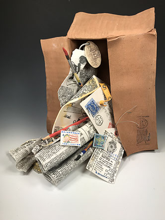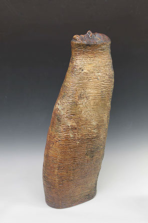 Much of my early work was marked by a gutsy quality and a celebration of the shibui character of many Japanese artforms. My early series of ceramic pieces features rough surfaces, dark colors and, in many cases, a feeling of age. Some of them bore elements of calligraphy. Message continues this series, but attempts to be more subtle and more mysterious –suggesting a secret message... perhaps. While earlier vessels used ancient runes or patterns that hint at strange letters, Message is simpler and more abstract. It never quite clearly gives a message, only suggests its possibility. Message moves on from the innocence of youth to the awareness of deeper meanings in maturity.