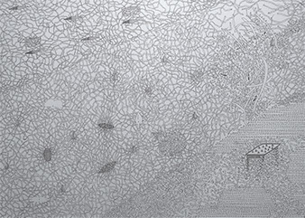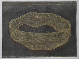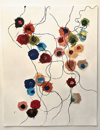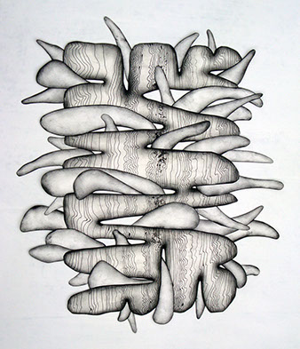 In works on paper that are simultaneously free flowing and highly structured, I impose a set of rules that govern the ordering and repetition of marks or gestures. I investigate the potential of these systems to generate intricate patterns and unexpectedly evocative forms.