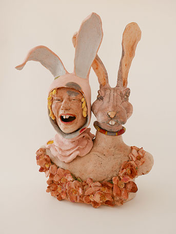 Each of my pieces in this particular series are folk tales of finding confidence in adversity. They are igniting their own beauty, bravery, and power from something uncomfortable - in coming to terms with a personal truth. Imagined in characters and forms that are cracked, quirky, or imperfect, these pieces aim to invoke a feeling of vulnerability, yet create a sense of fortitude in their risk and exposure. Their confidence is strengthened by a sense of purpose.