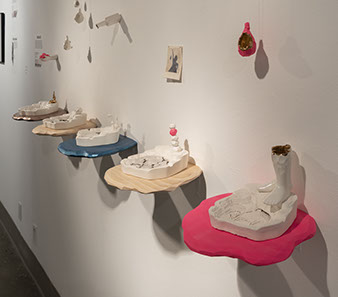 My work examines distance and dependence between individuals, or on our memories or situations, which translates to physical space between ceramic objects. Drawing on the intimate nature of clay and playing with the distance and engagement between objects allows me to consider how those objects might be experienced from different perspectives and possible narratives that express the human condition.