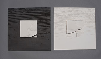 I seek to negotiate the elements of material and form through this non-representational work with the aim of harmoniously balancing the two, creating visually pleasing results. My materials are restricted to paper, ceramics, pigments, and light, and I seek to explore their potentialities at the most basic level. Without preconceived notions, I proceed with an openness to discovery, allowing my work to transform with new properties of and relationships between the materials revealing themselves. The attentive consideration of the formal elements of line, form, texture, and composition give shape to my work. The guiding principle in my compositions is the very possibility of beauty; the chance to create pleasure out of seemingly simple visual forms. The technical and intellectual challenge of mediating a successful interchange of both material and formal elements with visually pleasing results brings to light my aim to create art for the purest experience of art: the unfiltered moment in which the viewer is, perhaps inexplicably, satisfied and thrilled. This is what gives the work, as well as my practice, meaning.