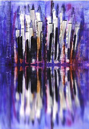 I do not envision what a given finished painting or print will look like. I start with color and build atmospheric fields to support forms. Each form is a feeling. I stack these forms like piles of books on a shelf. Time passes as I build layers. Blot it, wipe it away. Start over with a new thing, a new time, a new place. The process is an outlet for me to work towards becoming content with the unknown. Just as chance encounters impact our lives, I want to allow chance brushstrokes to change the outcome of an image. I want you to feel something in this moment. There is only this: now –a feeling that touches the heart, that touches the hand, that touches the brush to the paper.