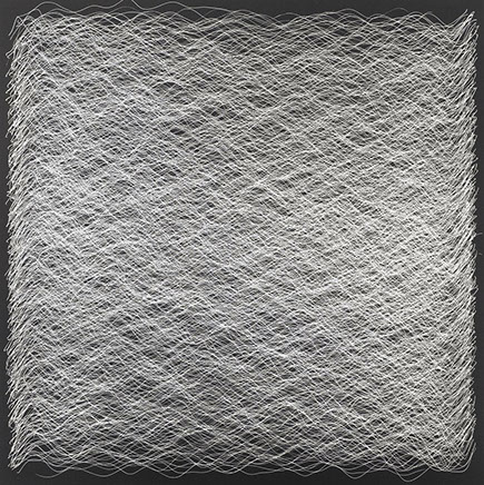 Out Of Darkness is part of the In Motion series, consisting of repeated undulating lines, superimposed over each other to create layered textures, giving an appearance of depth and mirroring the gestural arm motion used to create them.