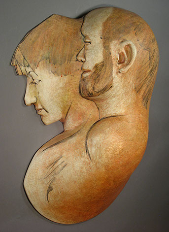 The sparse fluid line brushed across the surface of this relief sculpture captures the relaxed loving nature of this couple. By working in high relief I’m able to combine the best of both worlds –drawing on a smooth undulating surface combined with the heightened reality and strength of three-dimensional clay form and mass.